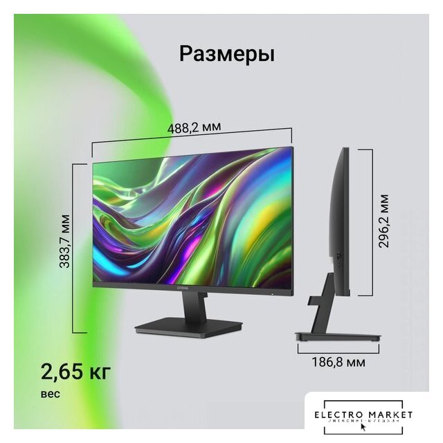 21.5", 16:9, 1920x1080, IPS, 100 Гц, AMD FreeSync, динамики, интерфейсы HDMI+DisplayPort+D-Sub (VGA)