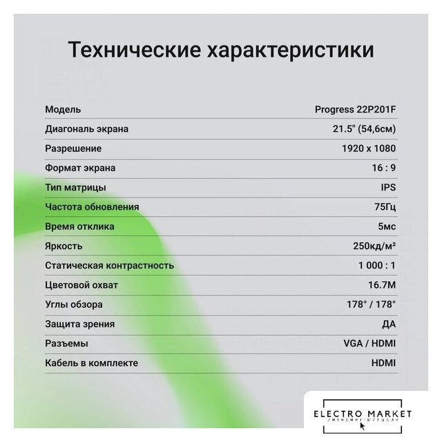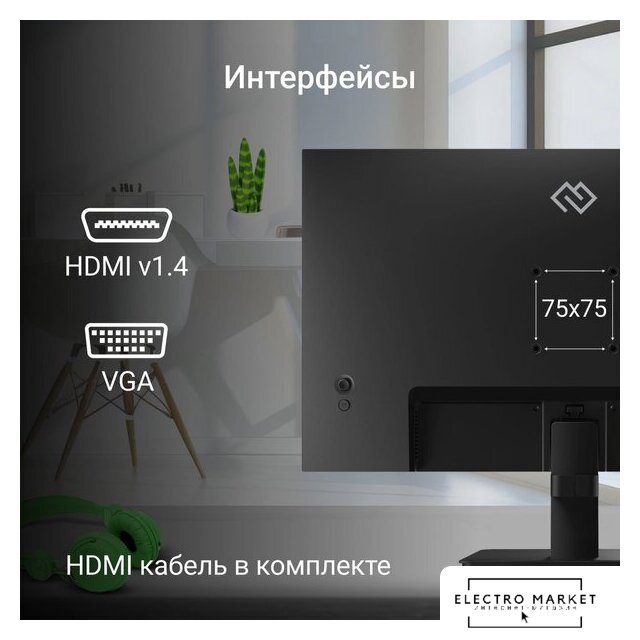 21.5", 16:9, 1920x1080, VA, 75 Гц, интерфейсы HDMI+D-Sub (VGA)