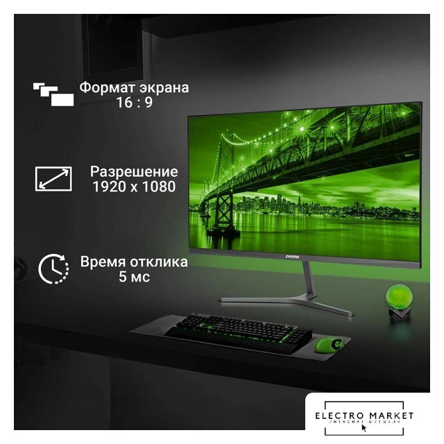 23.8", 16:9, 1920x1080, IPS, 100 Гц, AMD FreeSync, интерфейсы HDMI+D-Sub (VGA)
