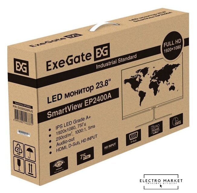 23.8", 16:9, 1920x1080, IPS, 75 Гц, AMD FreeSync, интерфейсы HDMI+DisplayPort+D-Sub (VGA)