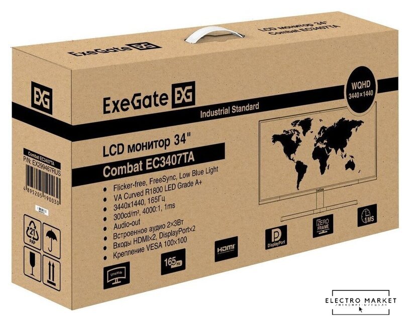 34", 21:9, 3440x1440, VA, 100 Гц, AMD FreeSync, интерфейсы HDMI+DisplayPort