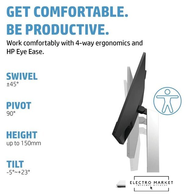 23.8", 16:9, 2560x1440, IPS, 60 Гц, интерфейсы HDMI+DisplayPort+USB Type-C, регулировка высоты, портретный режим