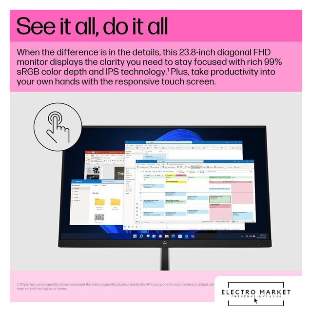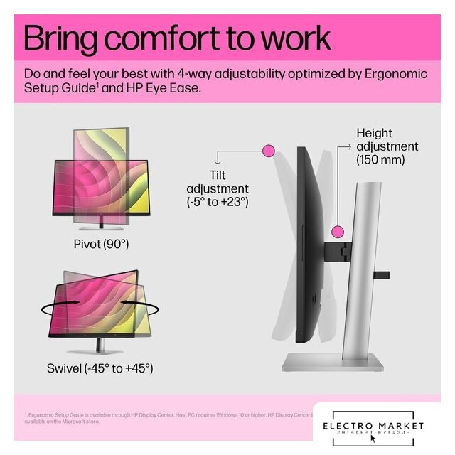 23.8", 16:9, 1920x1080, IPS, 60 Гц, интерфейсы HDMI+DisplayPort+USB Type-A+USB Type-C, регулировка высоты, портретный режим