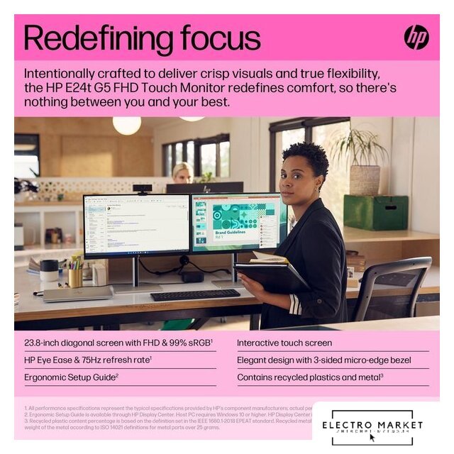 23.8", 16:9, 1920x1080, IPS, 75 Гц, VESA Adaptive-Sync, динамики, интерфейсы HDMI+DVI+D-Sub (VGA)+DisplayPort, регулировка высоты, портретный режим
