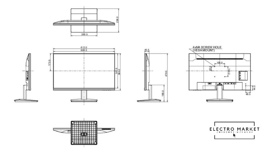 27", 16:9, 1920x1080, IPS, 60 Гц, интерфейсы HDMI+D-Sub (VGA)+DisplayPort, регулировка высоты, портретный режим