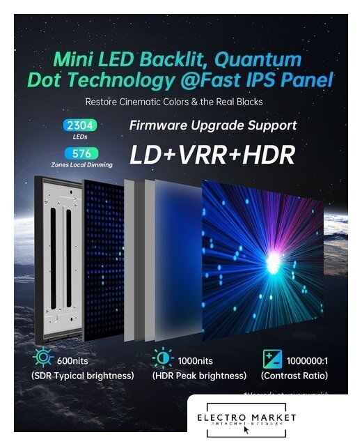 27", 16:9, 2560x1440, IPS, 180 Гц, AMD FreeSync/совместимый с NVIDIA G-Sync, интерфейсы HDMI+DisplayPort+USB Type-C, регулировка высоты, портретный режим
