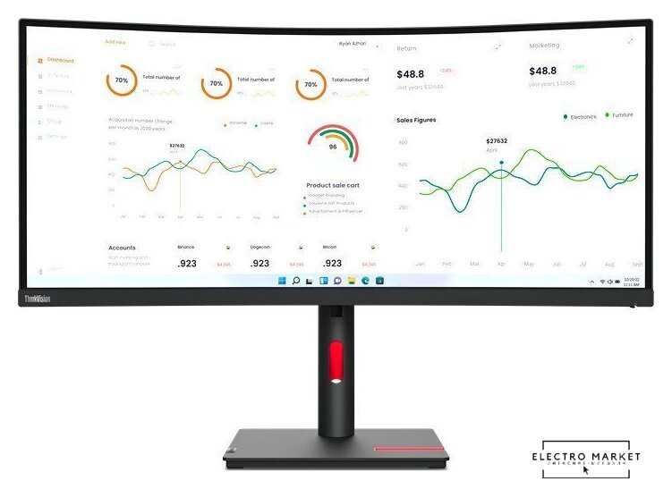34", 21:9, 3440x1440, IPS, изогнутый (3800R), 60 Гц, интерфейсы HDMI+DisplayPort+USB Type-C, регулировка высоты