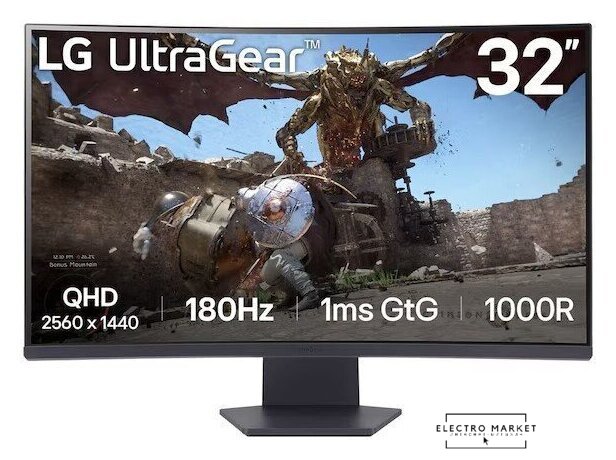 31.5", 16:9, 2560x1440, VA, изогнутый (1500R), 180 Гц, AMD FreeSync/VESA Adaptive-Sync, интерфейсы HDMI+DisplayPort+USB Type-C, регулировка высоты