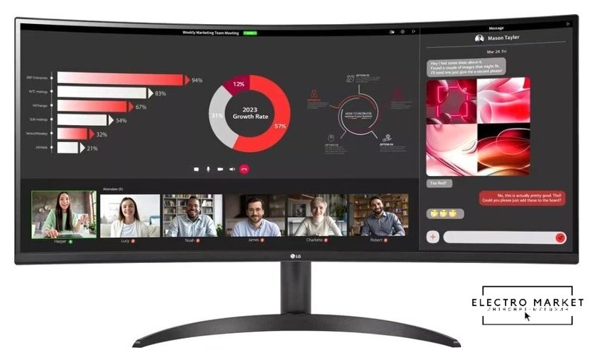 34", 21:9, 2560x1080, IPS, 100 Гц, AMD FreeSync, динамики, интерфейсы HDMI+DisplayPort+USB Type-C, регулировка высоты