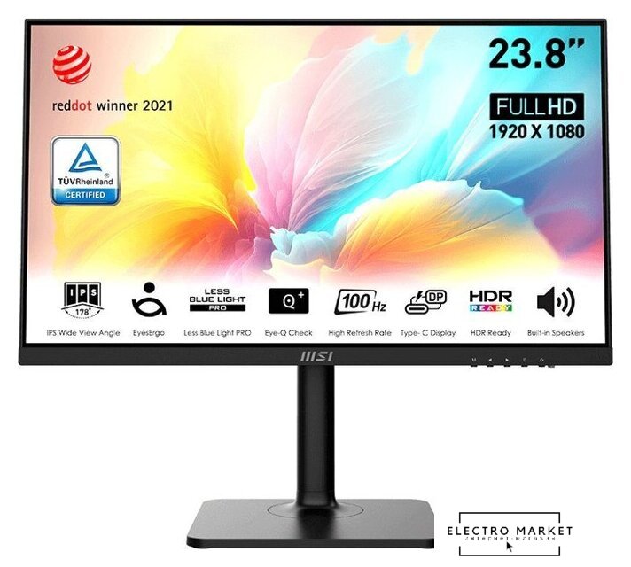 23.8", 16:9, 1920x1080, IPS, 100 Гц, динамики, интерфейсы HDMI+DisplayPort+D-Sub (VGA), регулировка высоты, портретный режим