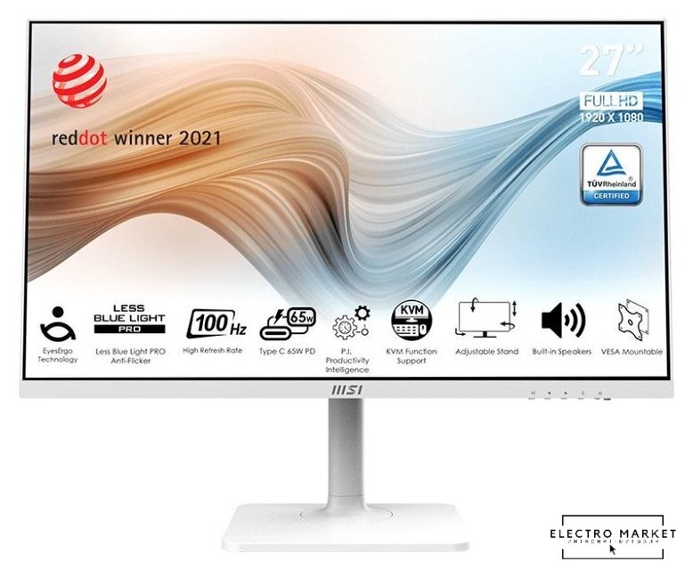 27", 16:9, 1920x1080, IPS, 75 Гц, VESA Adaptive-Sync, динамики, интерфейсы HDMI+D-Sub (VGA)+DisplayPort, регулировка высоты, портретный режим