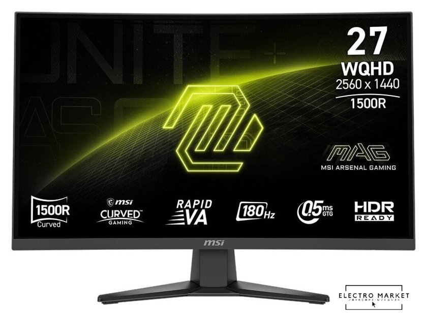 27", 16:9, 2560x1440, VA, изогнутый (1000R), 180 Гц, AMD FreeSync/VESA Adaptive-Sync, интерфейсы HDMI+DisplayPort