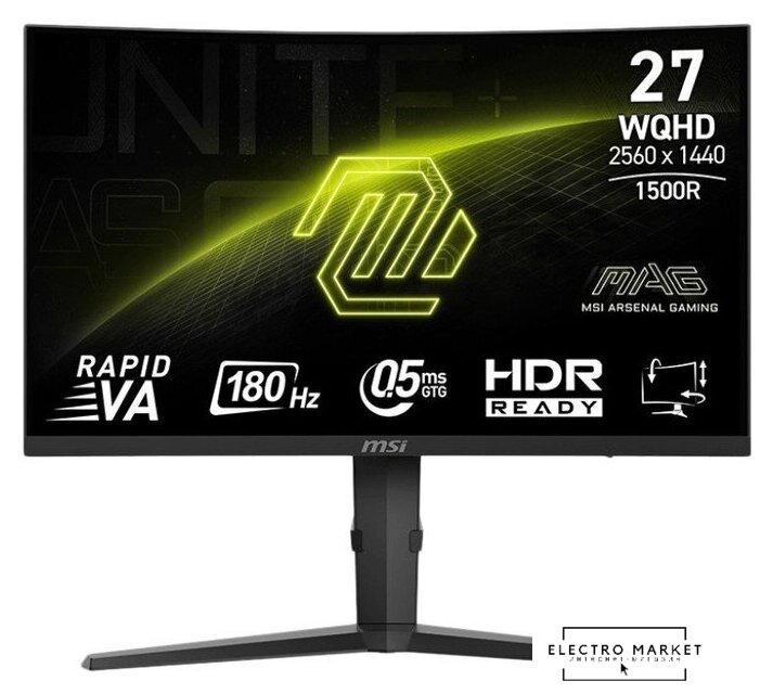 27", 16:9, 2560x1440, VA, изогнутый (1000R), 180 Гц, AMD FreeSync Premium, динамики, интерфейсы HDMI+DisplayPort, регулировка высоты