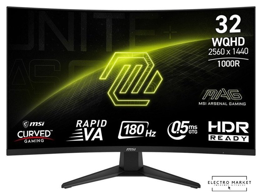 31.5", 16:9, 2560x1440, VA, изогнутый (1500R), 180 Гц, VESA Adaptive-Sync, интерфейсы HDMI+DisplayPort, регулировка высоты