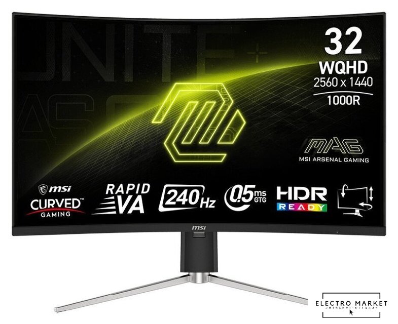 31.5", 16:9, 2560x1440, VA, изогнутый (1000R), 170 Гц, AMD FreeSync Premium, интерфейсы HDMI+DisplayPort+USB Type-C, регулировка высоты