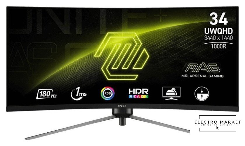 34", 21:9, 3440x1440, VA, изогнутый (1500R), 180 Гц, AMD FreeSync Premium, динамики, интерфейсы HDMI+DisplayPort, регулировка высоты