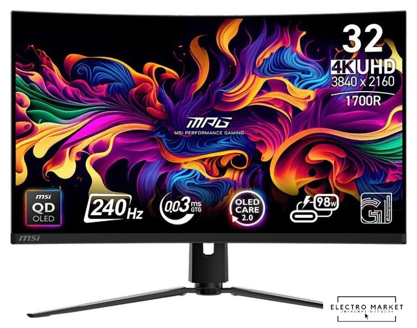 31.5", 16:9, 3840x2160, OLED, 240 Гц, AMD FreeSync Premium Pro/совместимый с NVIDIA G-Sync/VESA Adaptive-Sync, интерфейсы HDMI+DisplayPort+USB Type-C, регулировка высоты