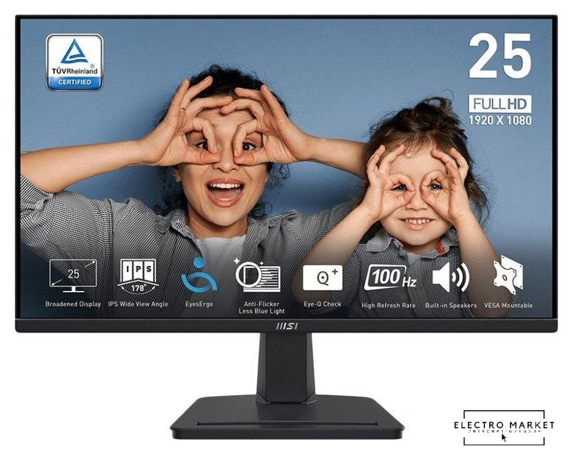 24.5", 16:9, 1920x1080, IPS, 100 Гц, AMD FreeSync, динамики, интерфейсы HDMI+D-Sub (VGA), регулировка высоты, портретный режим