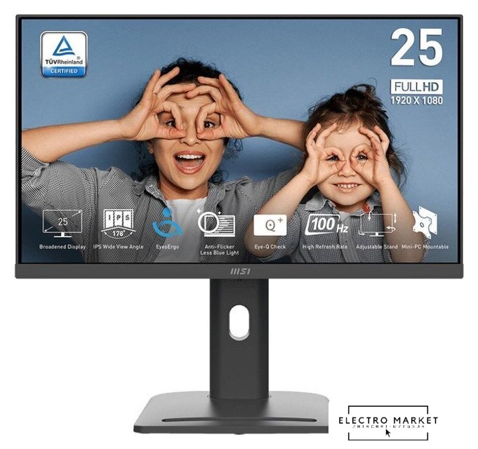 24.5", 16:9, 1920x1080, IPS, 100 Гц, AMD FreeSync, динамики, интерфейсы HDMI+D-Sub (VGA), регулировка высоты, портретный режим