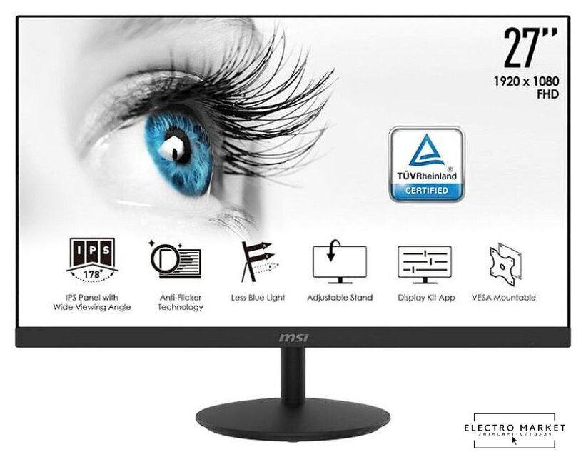 27", 16:9, 1920x1080, VA, подсветка боковая (Edge LED), 100 Гц, VESA Adaptive-Sync, динамики, интерфейсы HDMI+D-Sub (VGA)