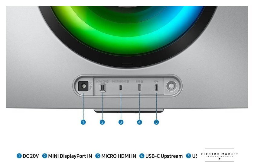 34", 3440x1440, 21:9, изогнутый, кривизна 1800R, OLED, 175 Гц, c квантовыми точками, глубина 10 бит, яркость 250 нит, HDMI+DisplayPort+USB Type-C+USB Type-A, питание по USB-C до 15 Вт, регулировка высоты