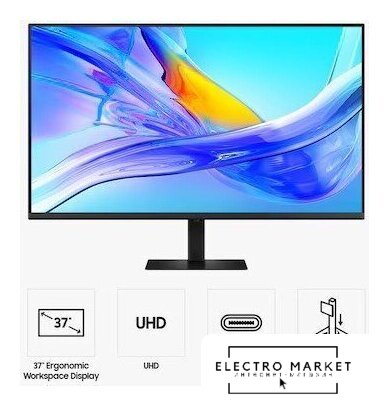 37", 3840x2160, 16:9, VA, 60 Гц, глубина 8 бит + FRC, яркость 350 нит, HDR10, HDMI+DisplayPort+USB Type-C, питание по USB-C до 90 Вт, регулировка высоты