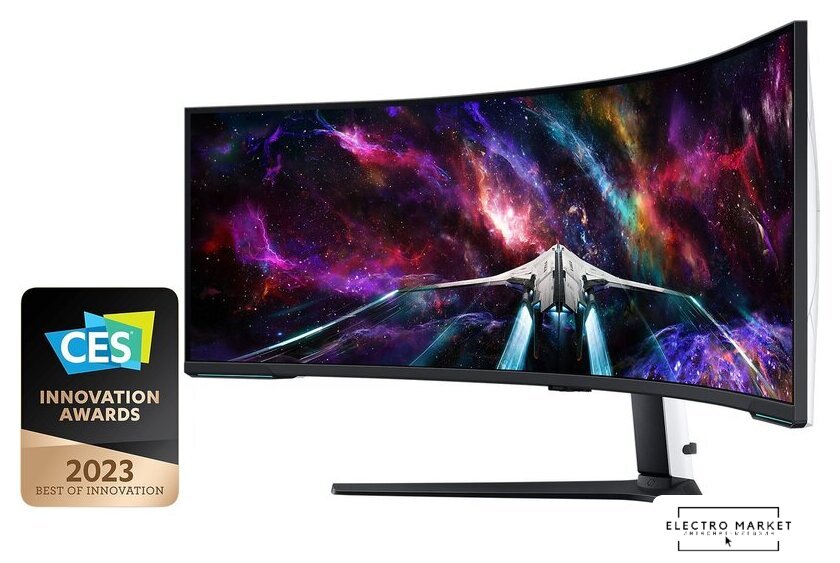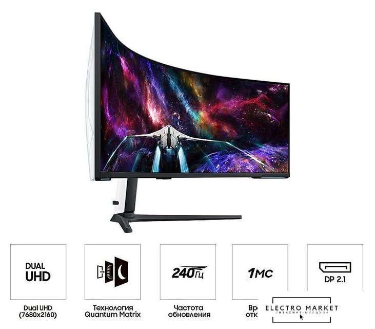 57", 32:9, 7680x2160, VA, подсветка miniLED, изогнутый (1000R), 120 Гц, AMD FreeSync Premium/VESA Adaptive-Sync, динамики, интерфейсы HDMI+DisplayPort+USB Type-C, регулировка высоты