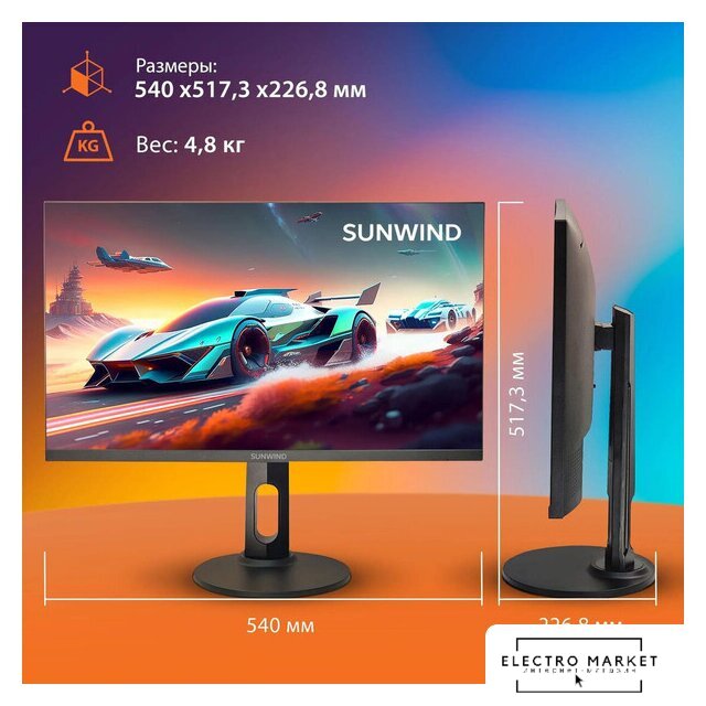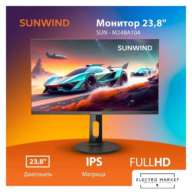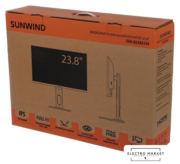 23.8", 16:9, 1920x1080, IPS, 75 Гц, AMD FreeSync, интерфейсы HDMI+DisplayPort+D-Sub (VGA)
