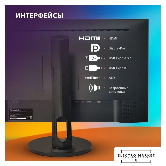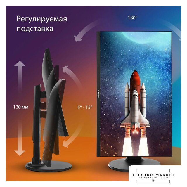 23.8", 16:9, 1920x1080, IPS, 75 Гц, AMD FreeSync, динамики, интерфейсы HDMI+DisplayPort+D-Sub (VGA), регулировка высоты