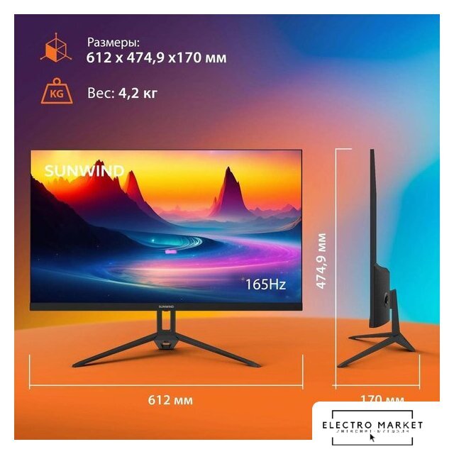 27", 16:9, 2560x1440, IPS, 165 Гц, AMD FreeSync, динамики, интерфейсы HDMI+DisplayPort