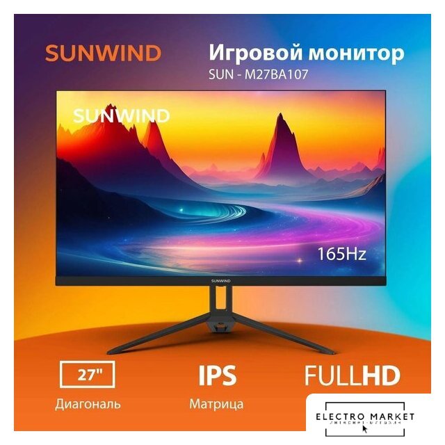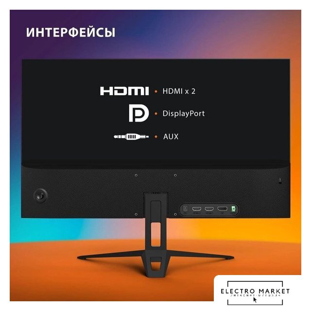 27", 1920x1080, 16:9, IPS, 100 Гц, глубина 6 бит + FRC, яркость 250 нит, HDMI+DisplayPort