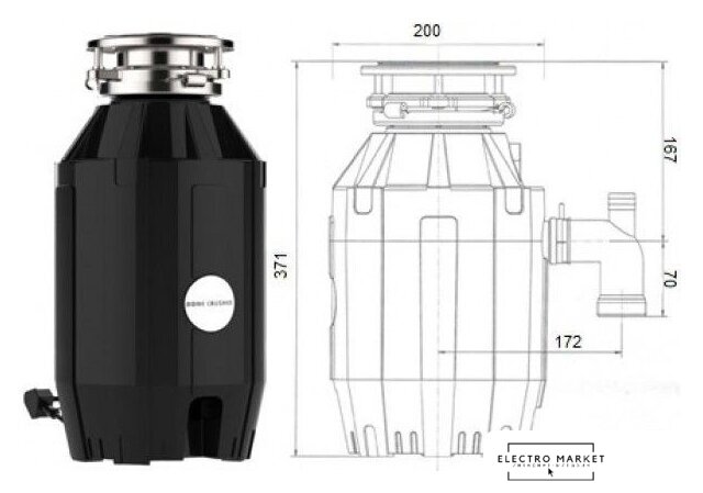 электрический, синхронный двигатель, 0.75 л.с., 520 Вт, 2700 об/мин, управление: пневмокнопка, камера 0.6 л, пластик, непрерывная загрузка, с защитой от перегрузок