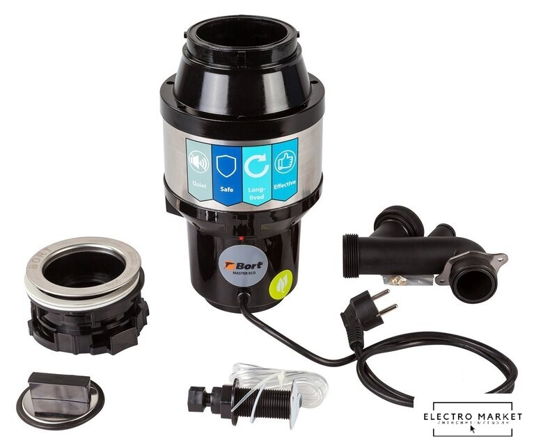электрический, синхронный двигатель, 0.5 л.с., 390 Вт, 3500 об/мин, управление: дистанционная кнопка, камера 1.05 л, композитный материал, 2-ступенчатое измельчение, непрерывная загрузка, с защитой от перегрузок, 58 дБ