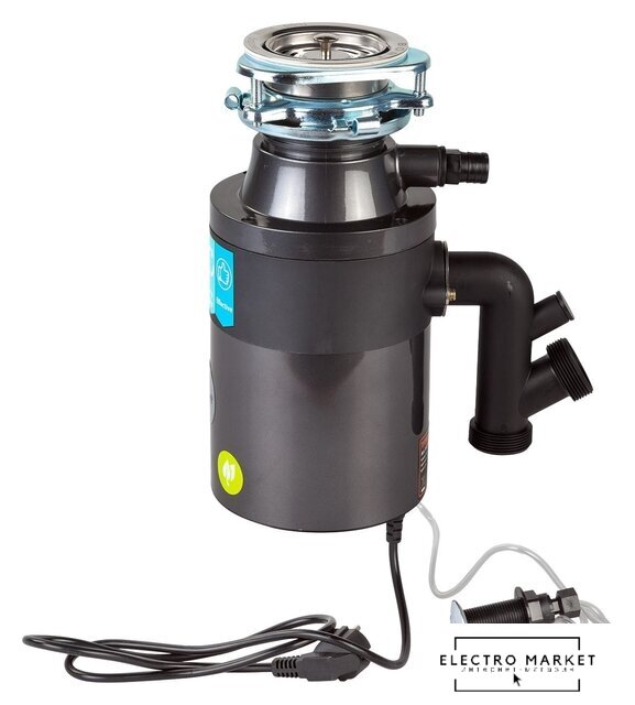 электрический, синхронный двигатель, 0.75 л.с., 560 Вт, 3200 об/мин, управление: пневмокнопка, камера 1.4 л, нержавеющая сталь, 3-ступенчатое измельчение, непрерывная загрузка, с защитой от перегрузок, 56 дБ