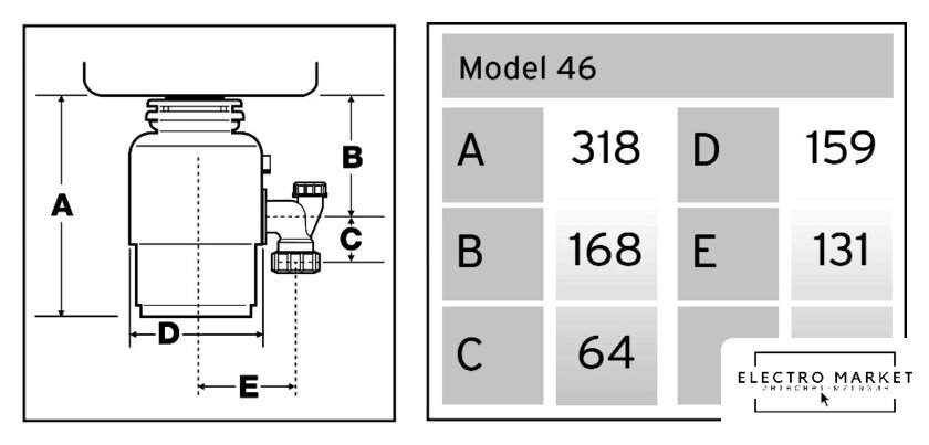 электрический, индукционный двигатель, 0.75 л.с., 560 Вт, 2200 об/мин, управление: дистанционная кнопка, камера 1.1 л, композитный материал, 3-ступенчатое измельчение, непрерывная загрузка, с защитой от перегрузок, 54 дБ