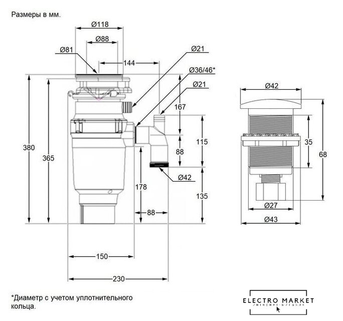 электрический, синхронный двигатель, 0.75 л.с., 560 Вт, 3900 об/мин, управление: настенный выключатель, камера 1.4 л, нержавеющая сталь, 1-ступенчатое измельчение, непрерывная загрузка, с защитой от перегрузок, 65 дБ