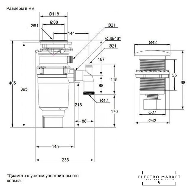 электрический, синхронный двигатель, 0.5 л.с., 475 Вт, 2600 об/мин, управление: пневмокнопка, камера 0.6 л, пластик, непрерывная загрузка, с защитой от перегрузок