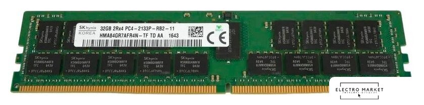 32 ГБ, 1 модуль DDR4 DIMM Registered, частота 3200 МГц, CL 22T, тайминги 22-22-22, напряжение 1.2 В