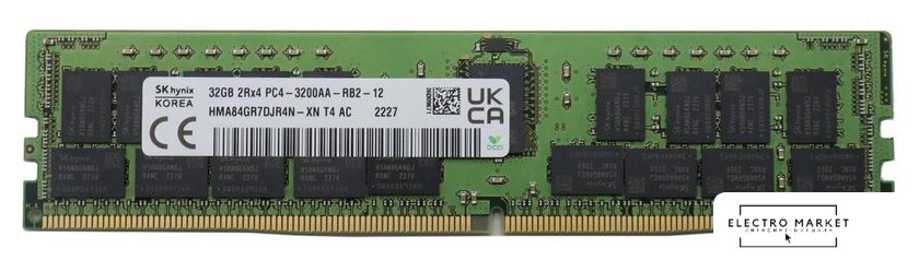 32 ГБ, 1 модуль DDR4 DIMM Registered, частота 3200 МГц, CL 22T, тайминги 22-22-22, напряжение 1.2 В