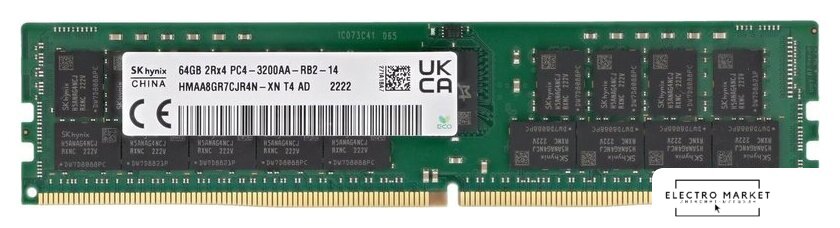 64 ГБ, 1 модуль DDR4 DIMM Registered, частота 3200 МГц, CL 22T, тайминги 22-22-22, напряжение 1.2 В