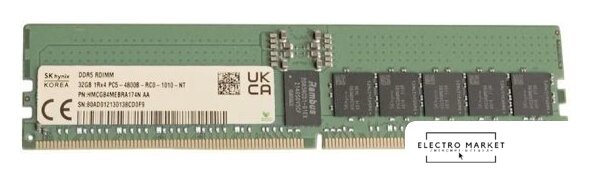 32 ГБ, 1 модуль DDR5 DIMM Registered, частота 6400 МГц, CL 32T, тайминги 32-39-39, напряжение 1.4 В
