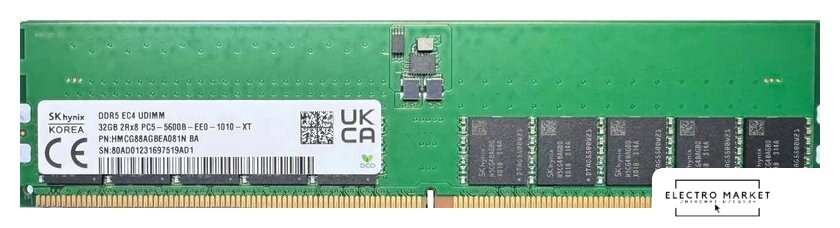 16 ГБ, 1 модуль DDR5 DIMM Registered, частота 5600 МГц, CL 46T, тайминги 46-45-45, напряжение 1.1 В