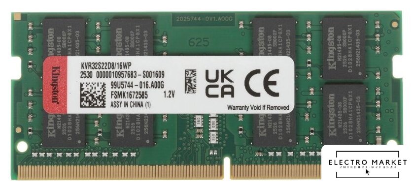 16 ГБ, 1 модуль DDR4 SO-DIMM, частота 3200 МГц, CL 20T, напряжение 1.2 В