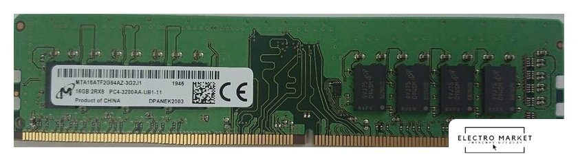 16 ГБ, 1 модуль DDR4 DIMM, частота 3200 МГц, CL 22T, тайминги 22-22-22-52, напряжение 1.2 В
