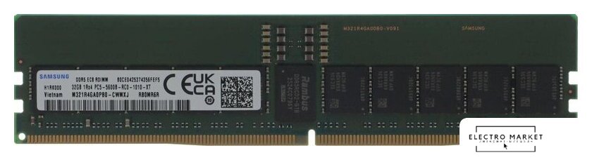 32 ГБ, 1 модуль DDR5 DIMM Registered, частота 5600 МГц, CL 46T, тайминги 46-45-45, напряжение 1.1 В