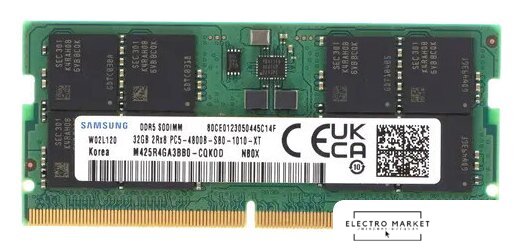 32 ГБ, 1 модуль DDR5 SO-DIMM, частота 4800 МГц, CL 40T, тайминги 40-39-39, напряжение 1.1 В