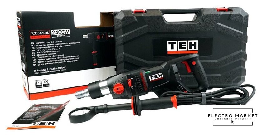 дрель алмазного сверления, 1500 Вт, патрон кулачковый (стандартный), 2 скорости, режимы: сверление/сверление с ударом