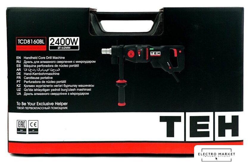 дрель алмазного сверления, 1800 Вт, 2 скорости, режимы: сверление с ударом