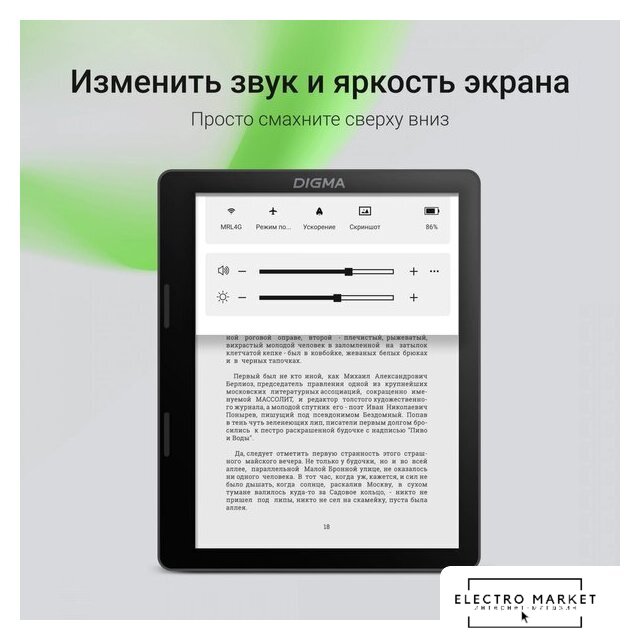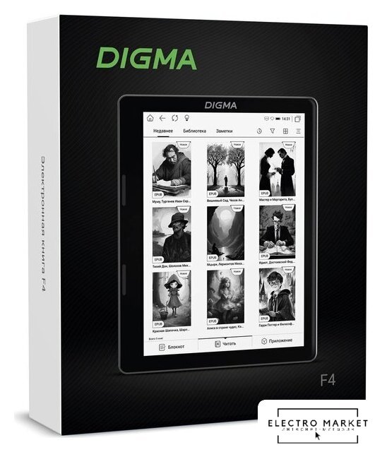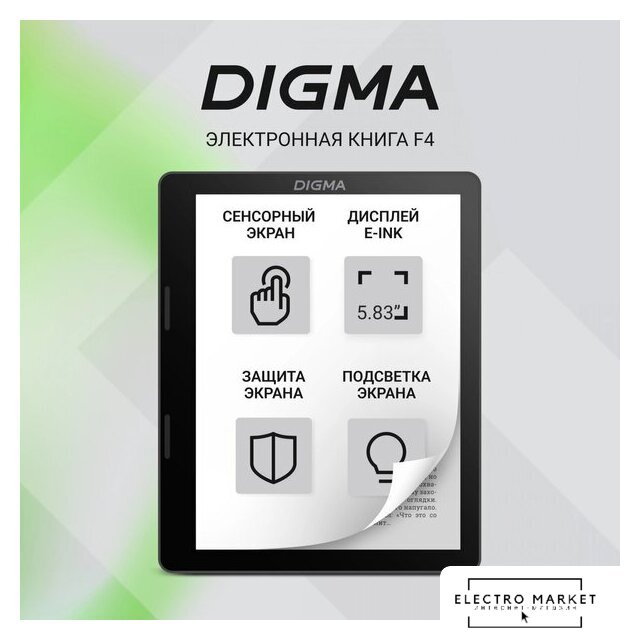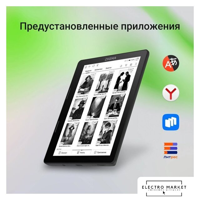 экран 6" E-Ink Pearl HD, 758 x 1024, с подсветкой, память 4 Гб, карты памяти