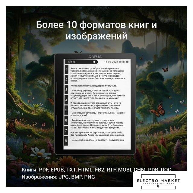 | Поддержка текстовых форматов | AZW3, DjVu, DOC, DOCX, CHM, ePub, FB2, MOBI, PDF, PRC, TXT |